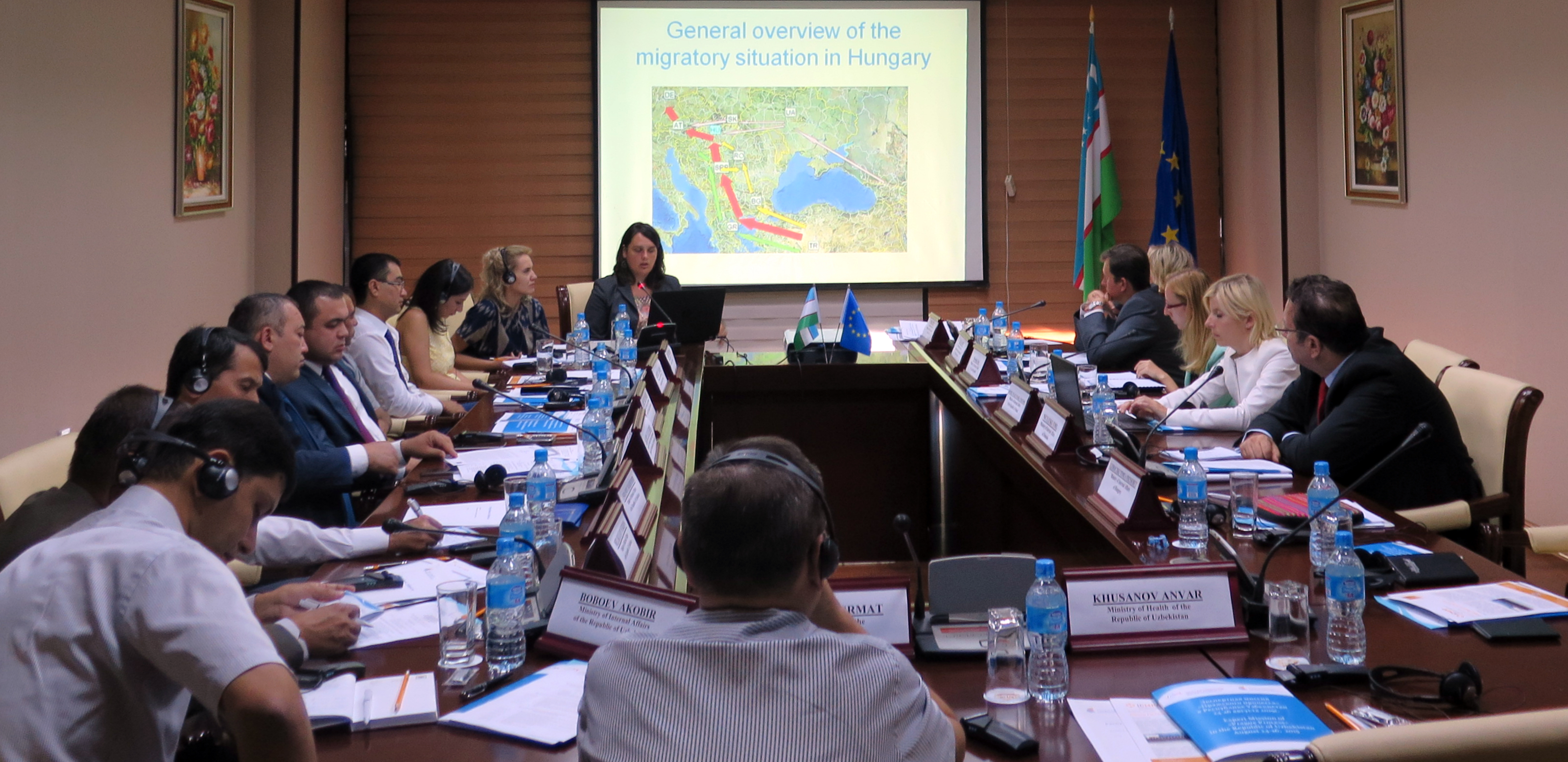 In the framework of Specific Objective 2 - Knowledge base, Expert Missions to the Republics of Kazakhstan and Uzbekistan took place in Astana on 18-21 August 2015 and in Tashkent on 24-26 August 2015, respectively. Four experts from the Project leading states affiliated with the Ministries of Internal Affairs of Czech Republic, Hungary, Poland and Romania, accompanied by the Prague Process Secretariat, have met the representatives of the governmental agencies responsible for the migration management in Uzbekistan and Kazakhstan. The key objective of the mission consisted in the mutual exchange of information, discussion of issues pertaining to migration, and presentation of in the draft Migration Profiles.