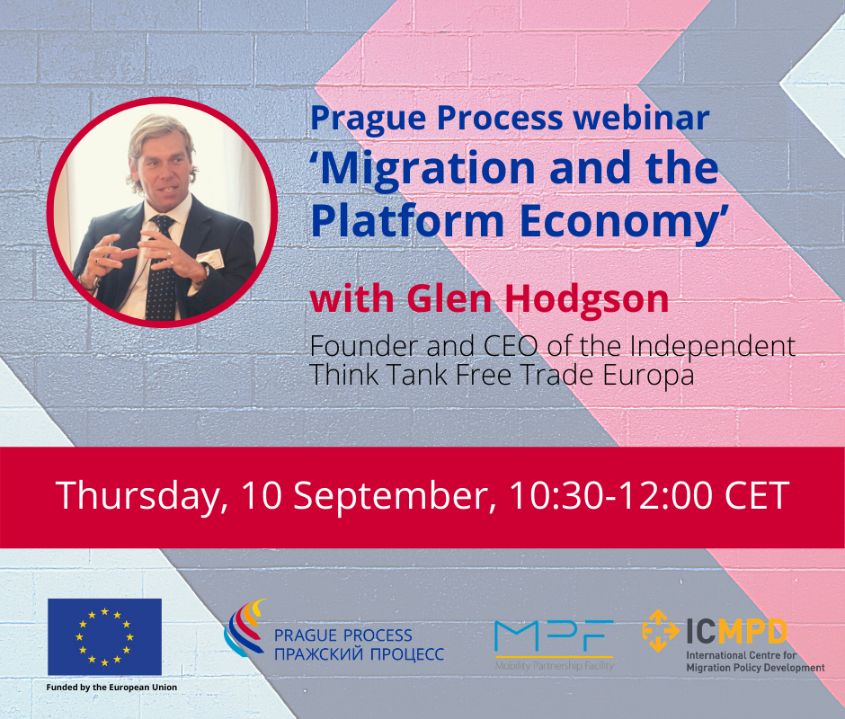 The sixth Prague Process webinar 'Migration and the Platform Economy' with Glen Hodgson, Founder and CEO of the Independent Think Tank Free Trade Europa, will take place on 10 September 2020 at 10:30 AM CET.