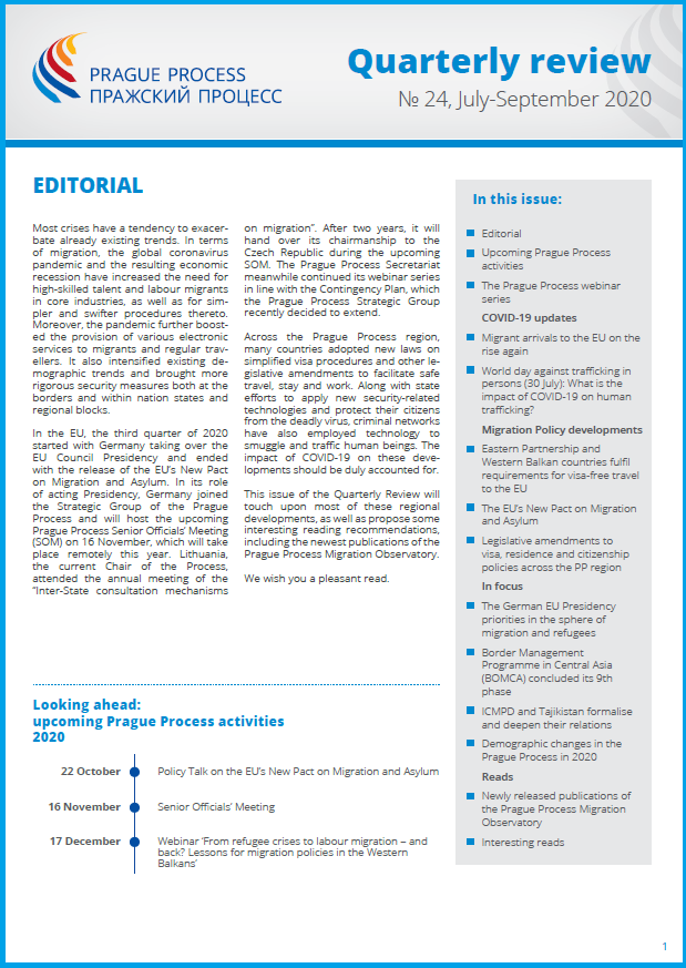 This issue of the Quarterly Review will touch upon most of these regional developments, as well as propose some interesting reading recommendations, including the newest publications of the Prague Process Migration Observatory.