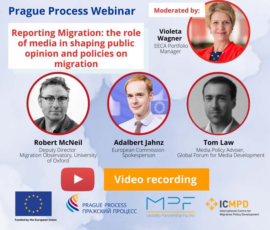 The Prague Process webinar ‘Reporting Migration: the role of media in shaping public opinion and policies on migration’ with Mr. Adalbert Jahnz, European Commission Spokesperson for migration, home affairs and citizenship, Mr. Robert McNeil, Deputy Director, Migration Observatory at the University of Oxford, and Mr. Tom Law, Media Policy Adviser, Global Forum for Media Development, took place on 24 June 2021.