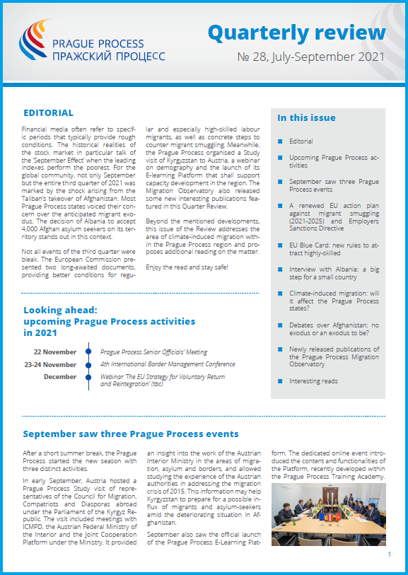 Not all events of the third quarter were bleak. The European Commission presented two long-awaited documents, providing better conditions for regular and especially high-skilled labour migrants, as well as concrete steps to counter migrant smuggling. Meanwhile, the Prague Process organised a Study visit of Kyrgyzstan to Austria, a webinar on demography and the launch of its E-learning Platform that shall support capacity development in the region. The Migration Observatory also released some new interesting publications featured in this Quarter Review.