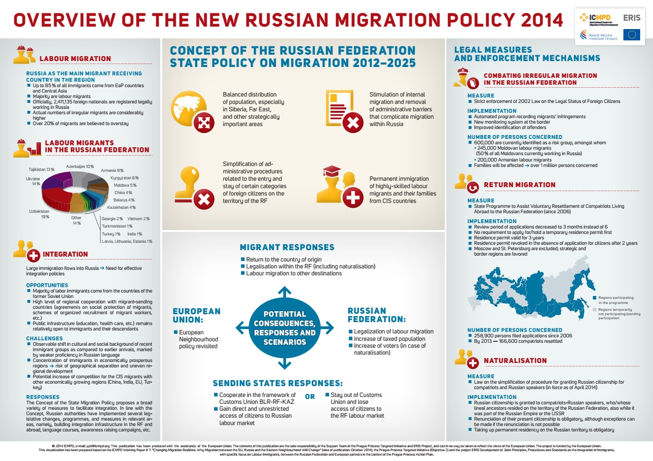 The poster presents the migration situation of Russia, an important immigration country in the region, which thus determines migration trends across the post-Soviet region.