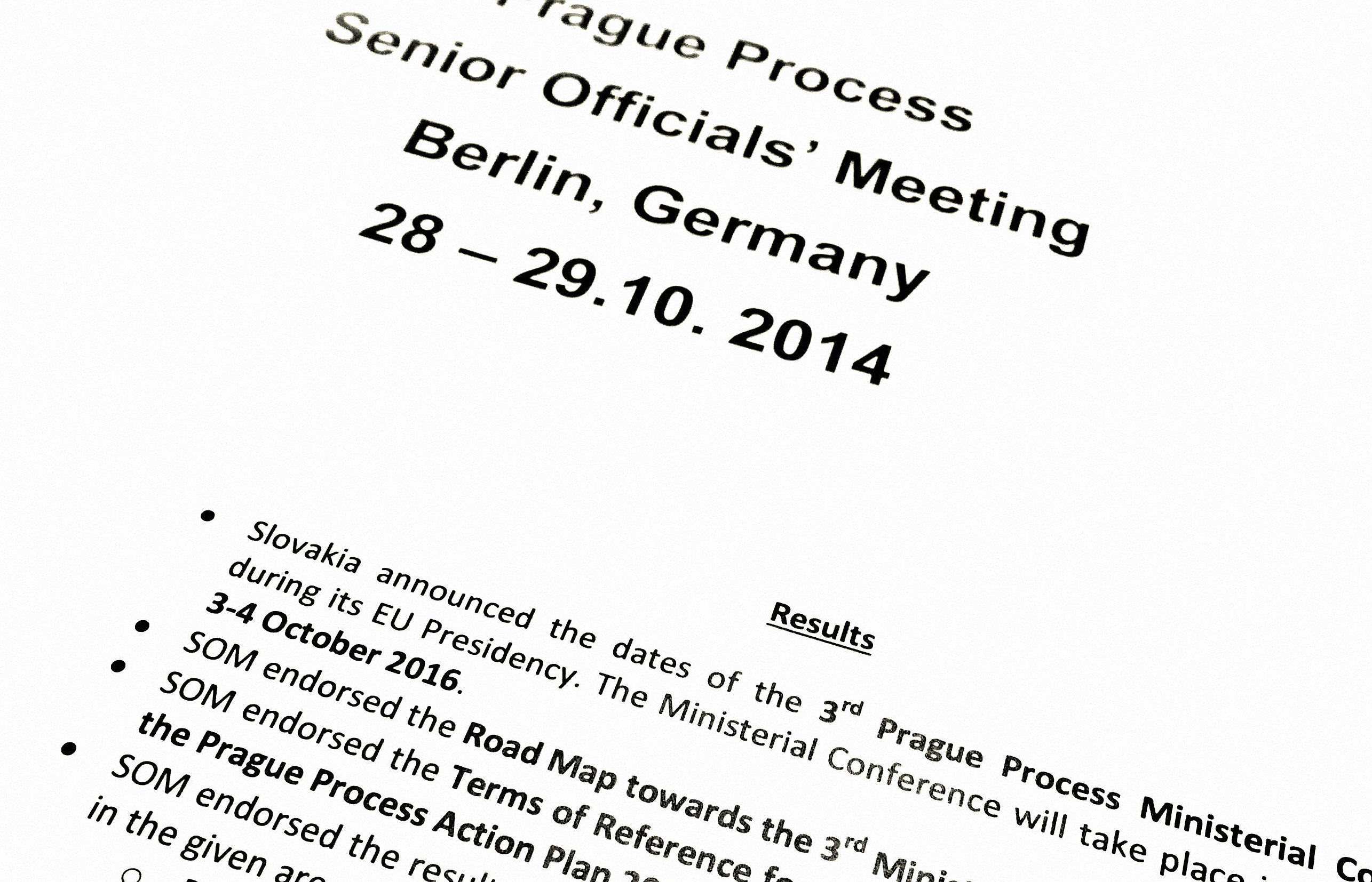 The results of the Prague Process Senior Officials´ Meeting held in Berlin on 28-29 October 2014 are available for publication now. Please, see below the summary of the main outcomes along with the information documents.