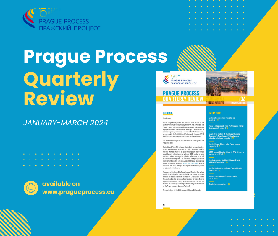 We are delighted to present you with the latest edition of the Quarterly Review, covering January to March 2024. This year, the Prague Process celebrates its 15th anniversary, a milestone that highlights sustained commitment of the Prague Process Parties to promote migration partnerships and cooperation. On this occasion, we look back to the first Ministerial Conference in Prague on 27-28 April 2009 and the subsequent evolution of the Prague Process.