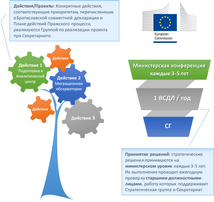целевой миграционный диалог и политический процесс, способствующий налаживанию миграционных партнерств между странами Европейского Союза, Шенгенской зоны, Восточного партнерства, Западных Балкан, Центральной Азии, а также Турцией.