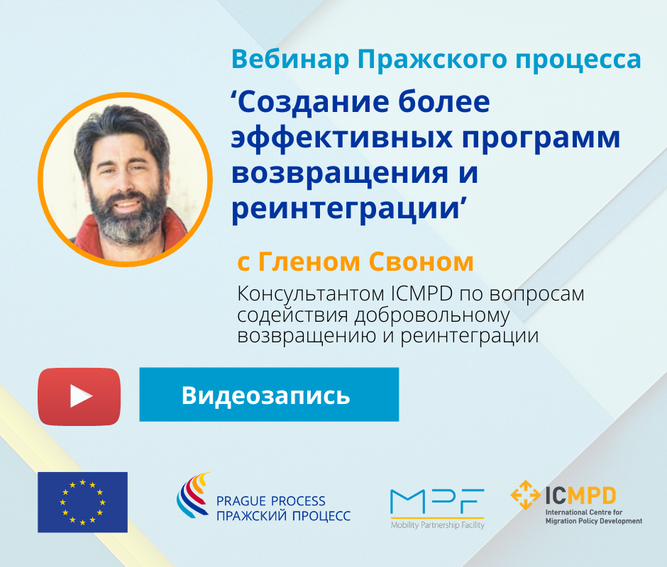 Восьмой вебинар Пражского процесса «Создание более эффективных программ возвращения и реинтеграции» с Гленом Своном, консультантом ICMPD по вопросам содействия добровольному возвращению и реинтеграции состоялся 6 октября 2020 года.