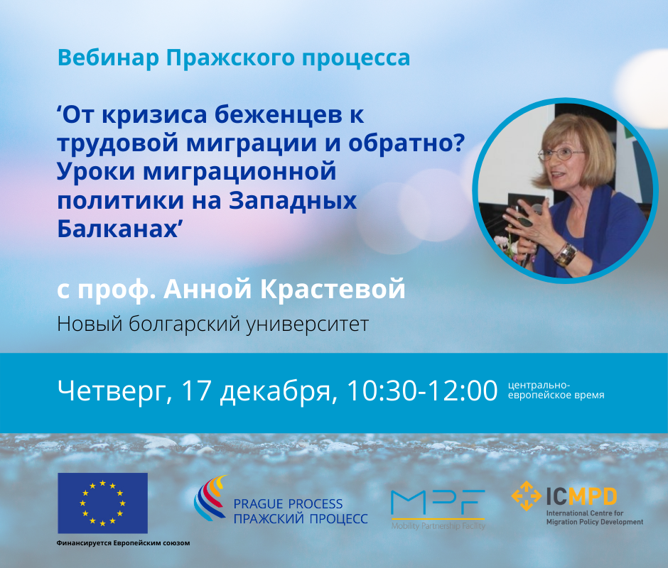 Девятый вебинар Пражского процесса «От кризиса беженцев к трудовой миграции и обратно? Уроки миграционной политики на Западных Балканах» с профессором Анной Крастевой, Новый болгарский университет, состоится 17 декабря 2020 года в 10:30 утра по центрально-европейскому времени.