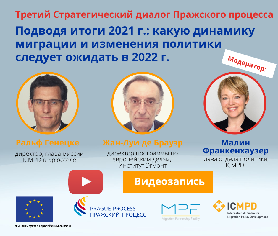 Стратегический диалог Пражского процесса: «Подводя итоги 2021 г.: какую динамику миграции и изменения политики следует ожидать в 2022 г.» с Жан-Луи де Брауэр, директором программы по европейским делам, Институт Эгмонт, и Ральфом Генецке, директором миссии ICMPD в Брюсселе, состоялся 20 января 2022 г.