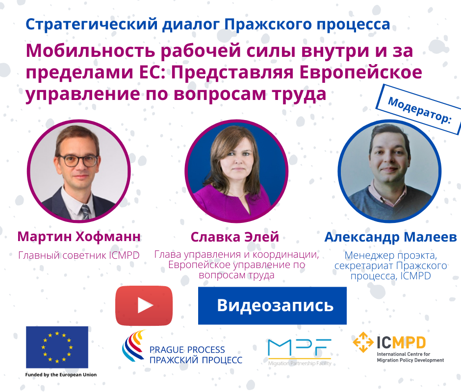Cтратегический диалог Пражского процесса: «Мобильность рабочей силы внутри и за пределами ЕС: Представляя Европейское управление по вопросам труда», с г-жой Славкой Элей, глава управления и координации в Европейском управлении по вопросам труда, и г-ном Мартином Хофманном, главный советник ICMPD, состоялся 27 января 2022 г.
