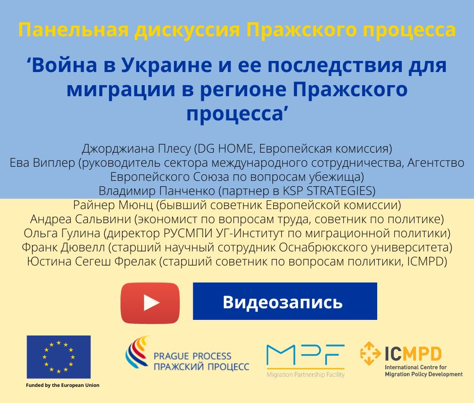 Предстоящая панельная дискуссия оценила первые два месяца войны с точки зрения миграции. Участники дискуссии обсудили немедленный ответ ЕС, а также текущую ситуацию на местах. Особое внимание было уделено условиям приема в соответствии с Директивой ЕС о временной защите и перспективам успешной интеграции прибывающих беженцев в общество и на рынки труда. Также были рассмотрены более широкие последствия миграции в регионе Пражского процесса, в том числе последствия беспрецедентных санкций, введенных против России, которая является ключевой страной назначения в регионе. Наконец, на мероприятии были представлены сценарии послевоенной миграции, включая перспективы возвращения и его движущие силы, а также более широкие социально-экономические и демографические последствия миграционных перемещений, имевших место на сегодняшний день и ожидаемых в будущем.
