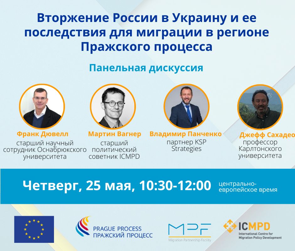Панельная дискуссия Пражского процесса: «Вторжение России в Украину и ее последствия для миграции в регионе Пражского процесса» состоится в четверг, 25 мая 2023 г., в 10:30 утра по центральноевропейскому времени.