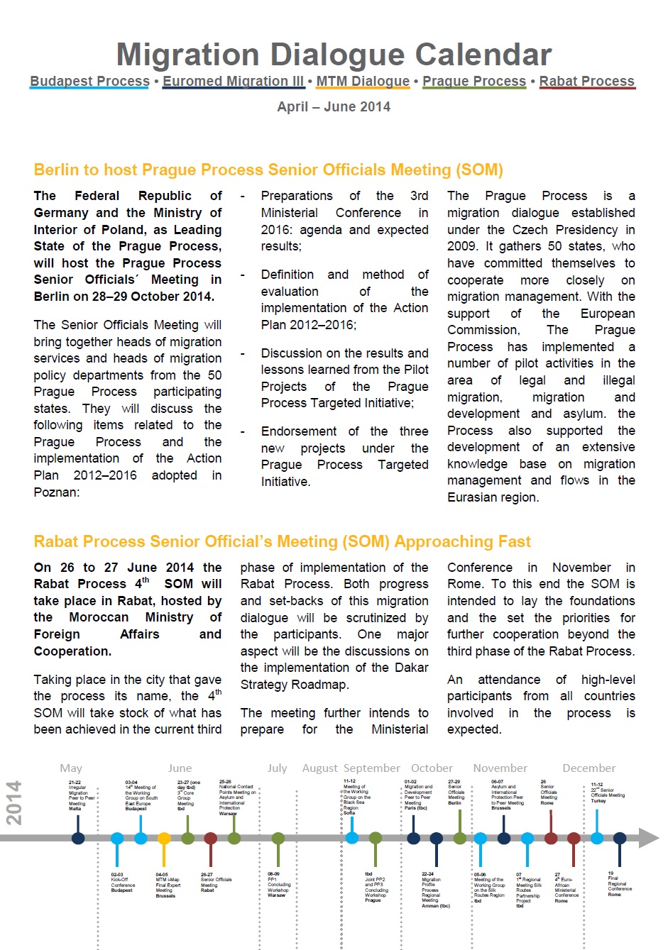 Календарь миграционных диалогов апрель – июнь 2014 представляет обзор запланированных мероприятий в рамках миграционных диалогов при поддержке ICMPD