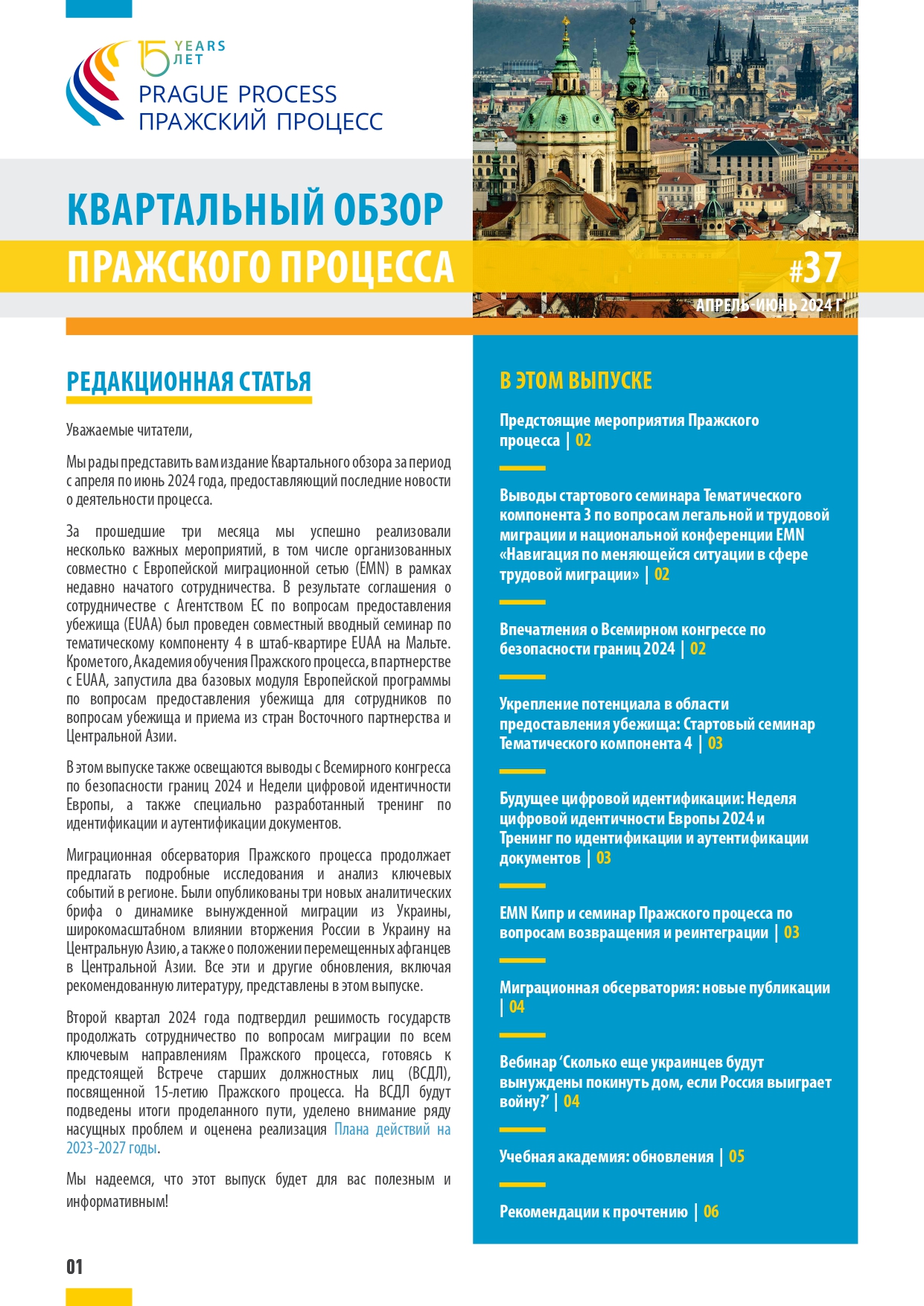 Второй квартал 2024 года подтвердил решимость государств продолжать сотрудничество по вопросам миграции по всем ключевым направлениям Пражского процесса, готовясь к предстоящей Встрече старших должностных лиц (ВСДЛ), посвященной 15-летию Пражского процесса. На ВСДЛ будут подведены итоги проделанного пути, уделено внимание ряду насущных проблем и оценена реализация Плана действий на 2023-2027 годы.