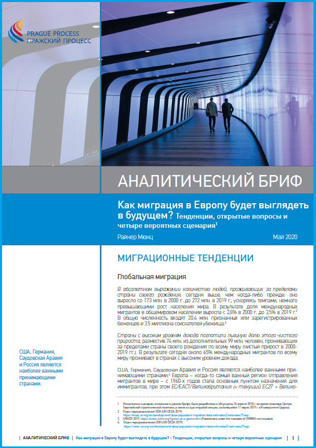 В аналитическом брифе рассматриваются миграционные тенденции последних 20 лет, излагаются открытые вопросы для национальных миграционных политик, и делается попытка выдвинуть четыре вероятных сценария того, как миграция в Европу может выглядеть в будущем. При этом в брифе также рассматривается влияние пандемии CoVid-19 на миграцию.
