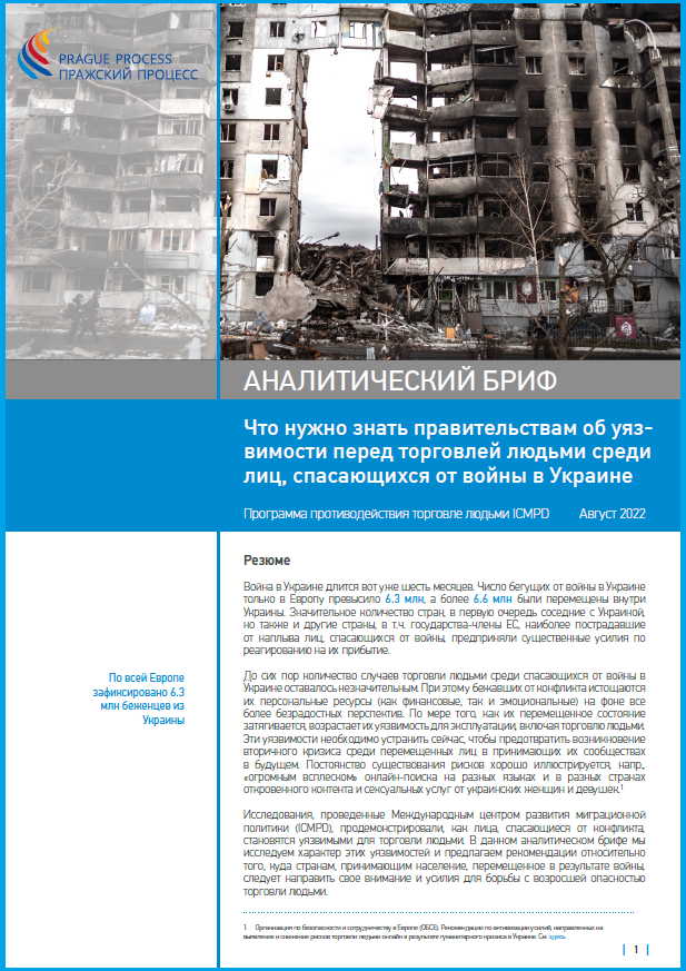 Исследования, проведенные Международным центром развития миграционной политики (ICMPD), продемонстрировали, как лица, спасающиеся от конфликта, становятся уязвимыми для торговли людьми. В данном аналитическом брифе мы исследуем характер этих уязвимостей и предлагаем рекомендации относительно того, куда странам, принимающим население, перемещенное в результате войны, следует направить свое внимание и усилия для борьбы с возросшей опасностью торговли людьми.